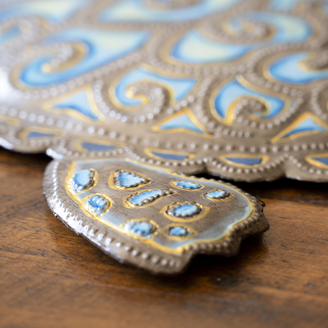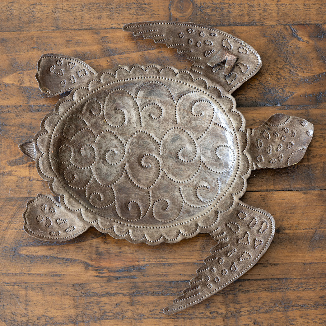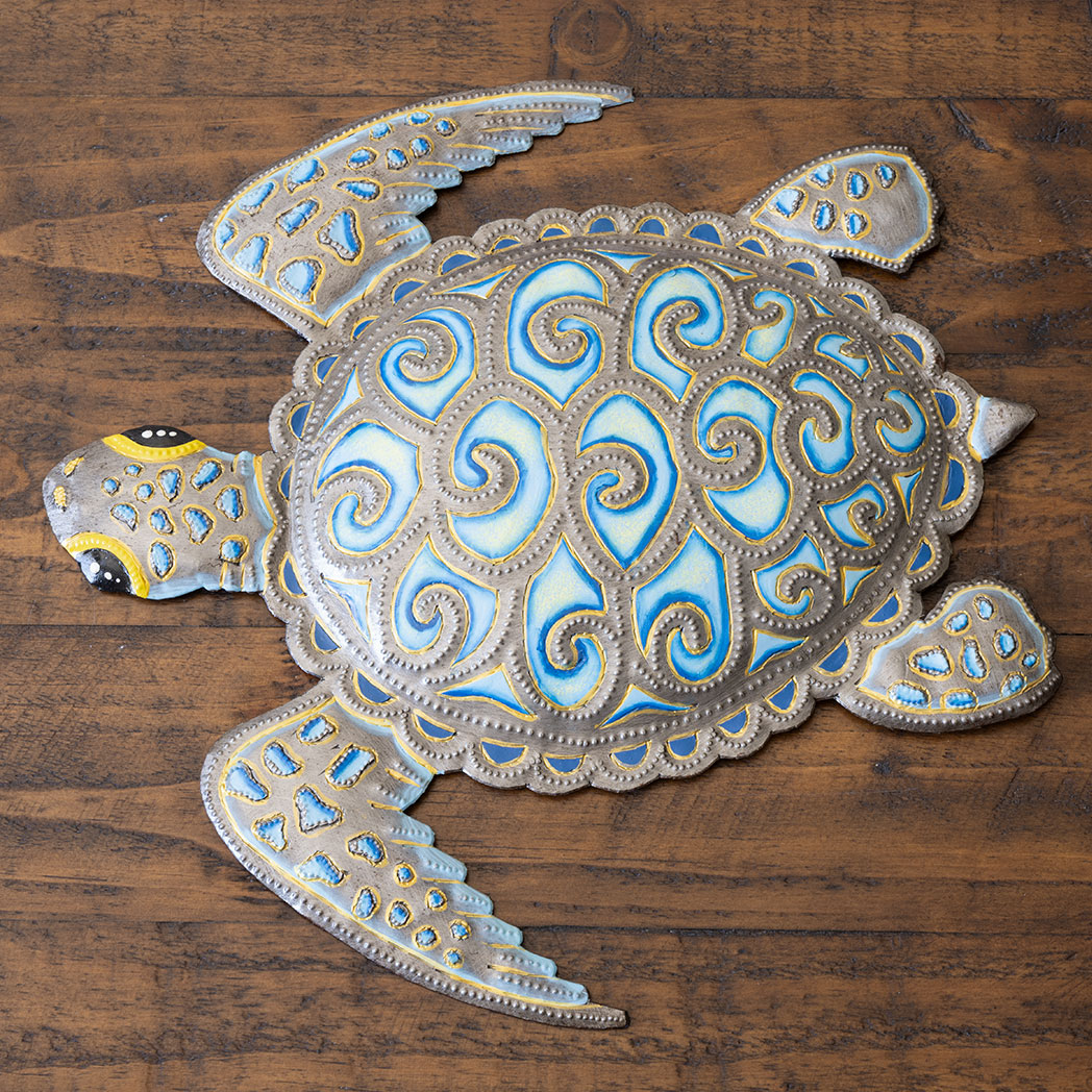 Following four generations of tradition, each piece of Haitian metal art is made entirely by hand with simple tools. Starting with a cast-off steel drum, the metal is cleaned, sanded, and pounded flat. From there, the artist chalks his design onto the metal and then begins the heavy, tedious work of cutting out the pattern with a hammer and chisel and giving the piece detail and dimension. Finally, he applies a clear-coat to the piece, which protects it and makes it perfectly suited for indoor or outdoor display. Worried that these sculptures may rust? Don’t be. A weathered patina isn’t necessarily a bad thing, but if that’s not the look you’re going for, take 5 minutes once a year to apply a clear spray on enamel, and they will always look the same as the day you bought them. It’s that easy.