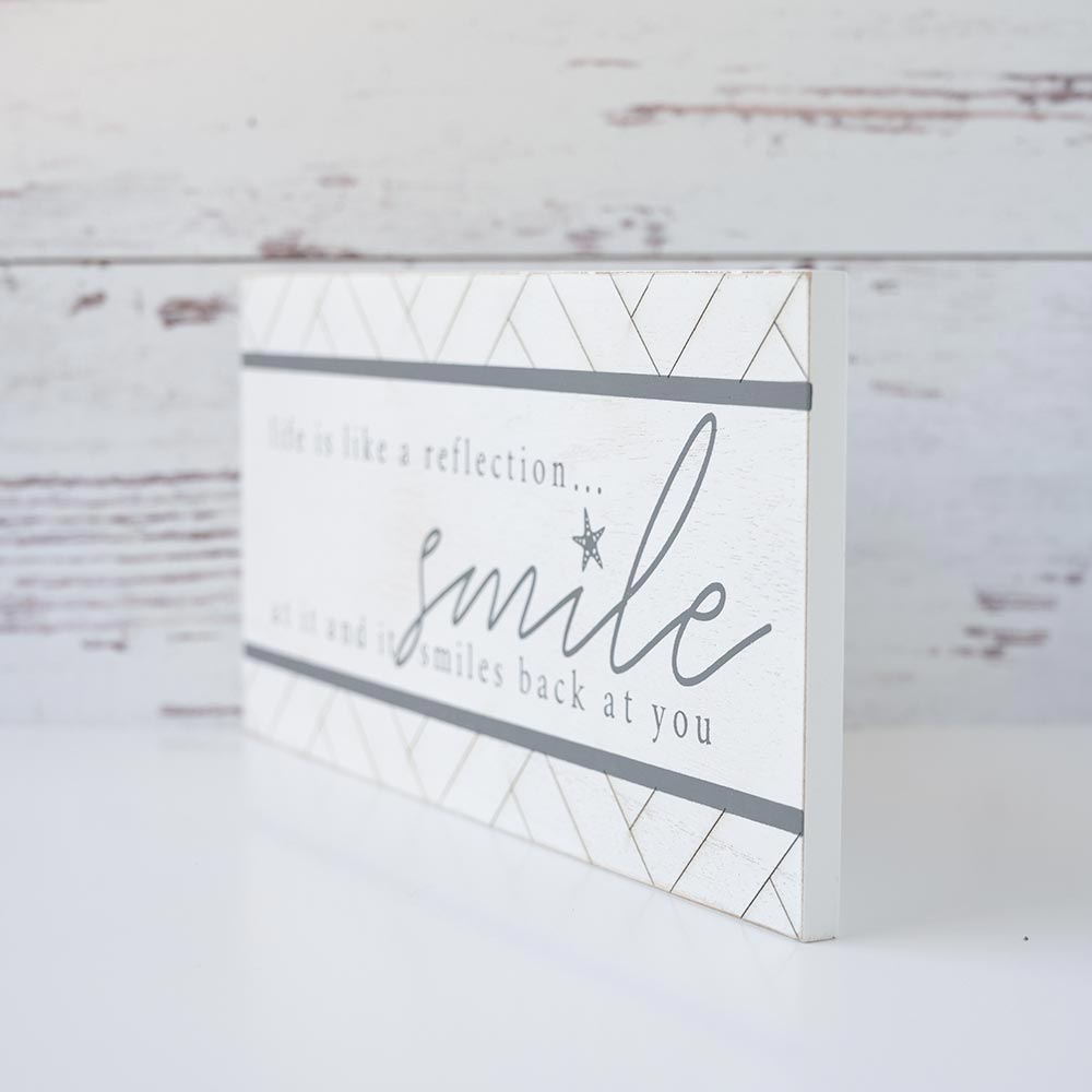The Life is Like a Reflection wood sign is a daily reminder to smile and is sure to bring cheer to any room or office.