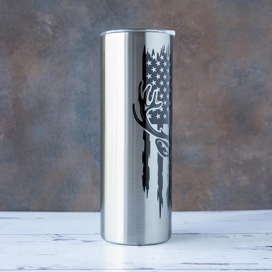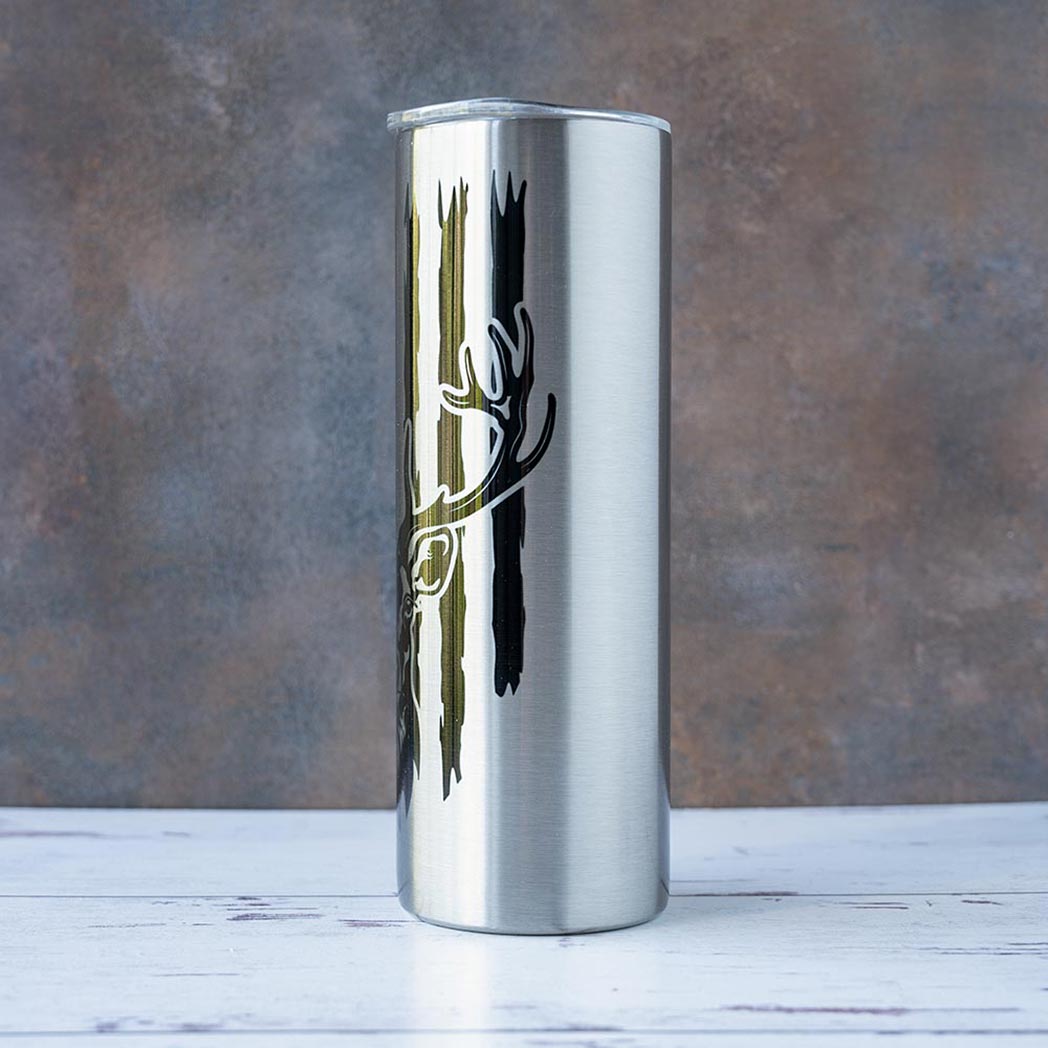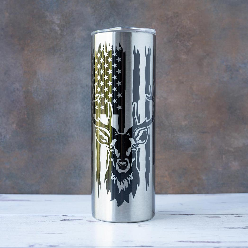 The stainless steel The Buck & American Flag tumbler offers a clean a sleek design of a Buck and the American Flag. Every Buck & American Flag tumbler is made to order, creating a different tumbler experience where no two tumblers are the same. Enjoy your unique 20 oz. tumbler with every sip on the go, at home, work or relaxing on the soft sands of your favorite beach or under the trees of your favorite park.