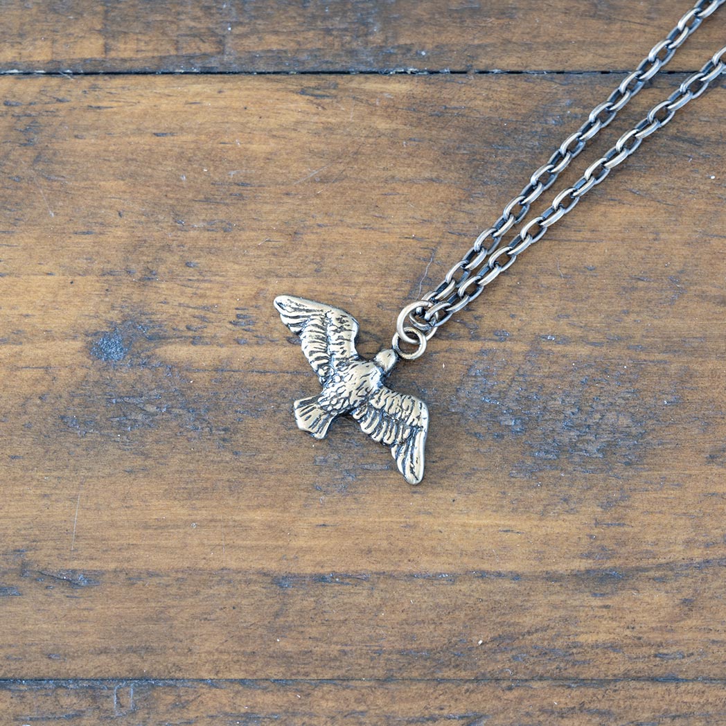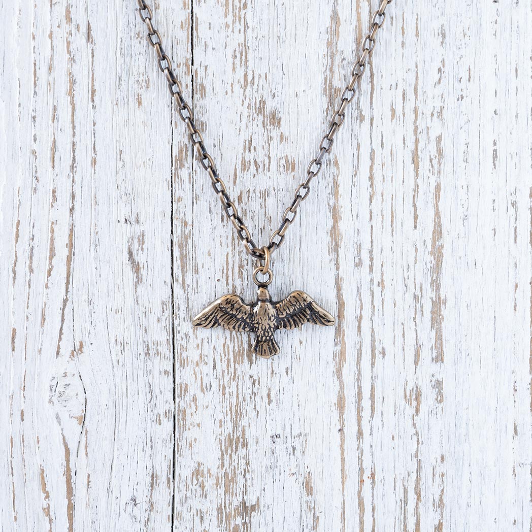 The Freedom Eagle necklace is a subtle reminder that anything is possible in America. Its wings spread open and soaring to new heights with a flight of soul, this is the perfect gift for the man who loves to work hard and live free. Made of bronze and solid brass and 20″ long, the Freedom Eagle necklace looks great under an opened collared shirt or over a t-shirt.
