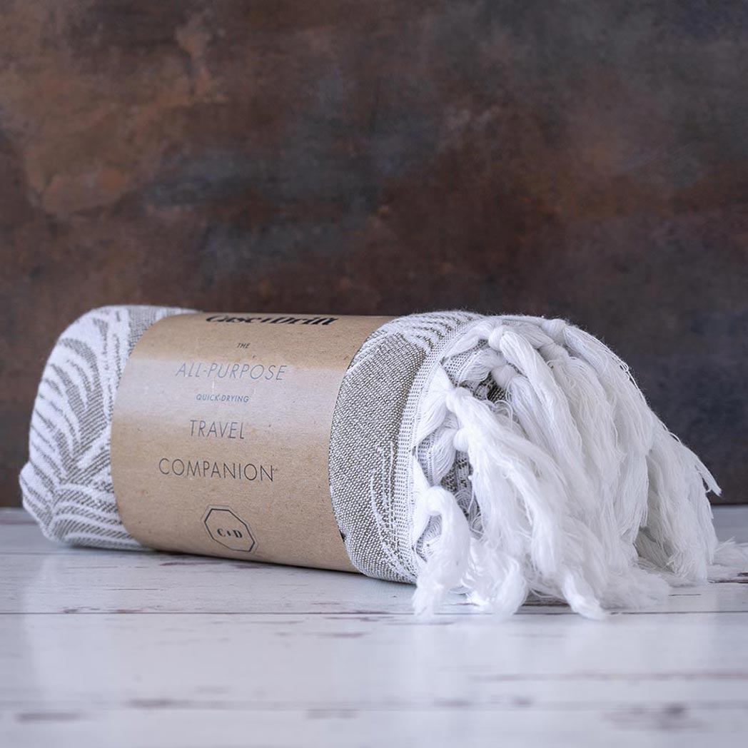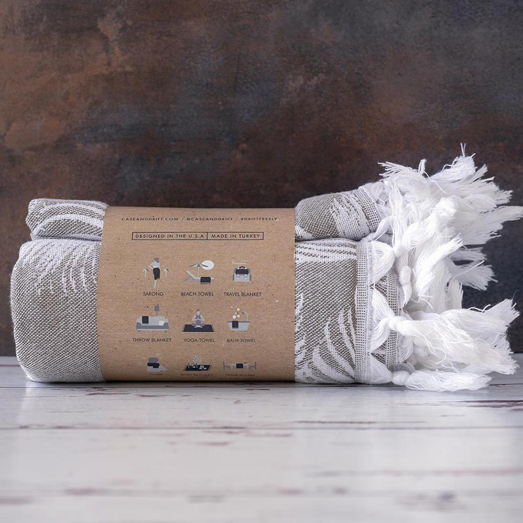 The Case+Drift Palms Towel Blanket is the perfect gift or treat for just about anyone. These beautiful Turkish towels are custom designed to be quick drying, stylish, compact and most importantly, versatile. The Palms Towel blanket is perfect for the beach, travel, cozying up at home or anything in between. The Palms can be used as a towel, blanket, scarf, wrap and much more, getting softer after each use & wash.