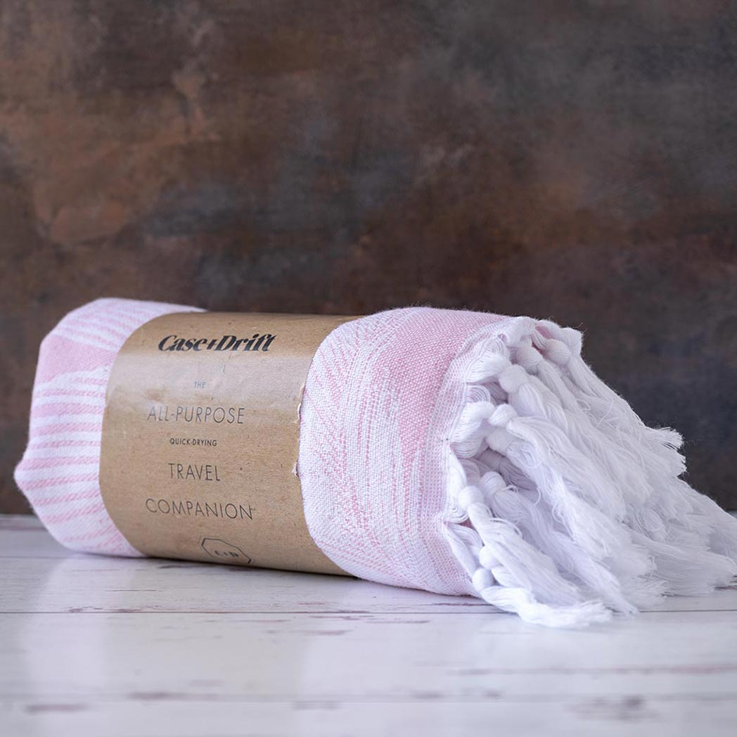 Meet Case+Drift: Designed by a fellow globetrotter. My inspiration to start my own brand began with my move from Florida to Australia. The two-year adventure fueled my love for exploration and took me to many different places in the world. Bouncing around the globe with a Turkish towel gifted to me by a friend, I realized how convenient they were not only for travel, but for every day use. So I began custom designing my own with style and versatility in mind. The brand has since expanded to include a larger geo towel and travel bags!