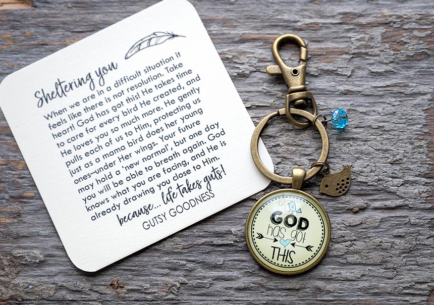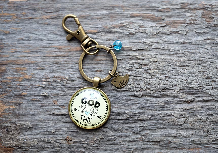 Keep the heartfelt message close of God Has Got This with the Faith inspired boho style keychain.