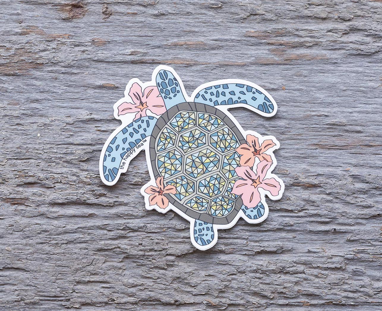 Show your love for our coastal armored friends on your laptop, window, tumbler and more with the new colorful the Happy Sea Hibiscus Turtle Sticker. Designed with a colorful sea turtle adorned with hibiscus flowers, the 4″ vintage Hibiscus Turtle Sticker by the Happy Sea is made of durable weather resistant vinyl to protect from the rain, sun and wind. Always American made with a portion of their proceeds to ocean conservation, make these The Happy Sea stickers pretty special.