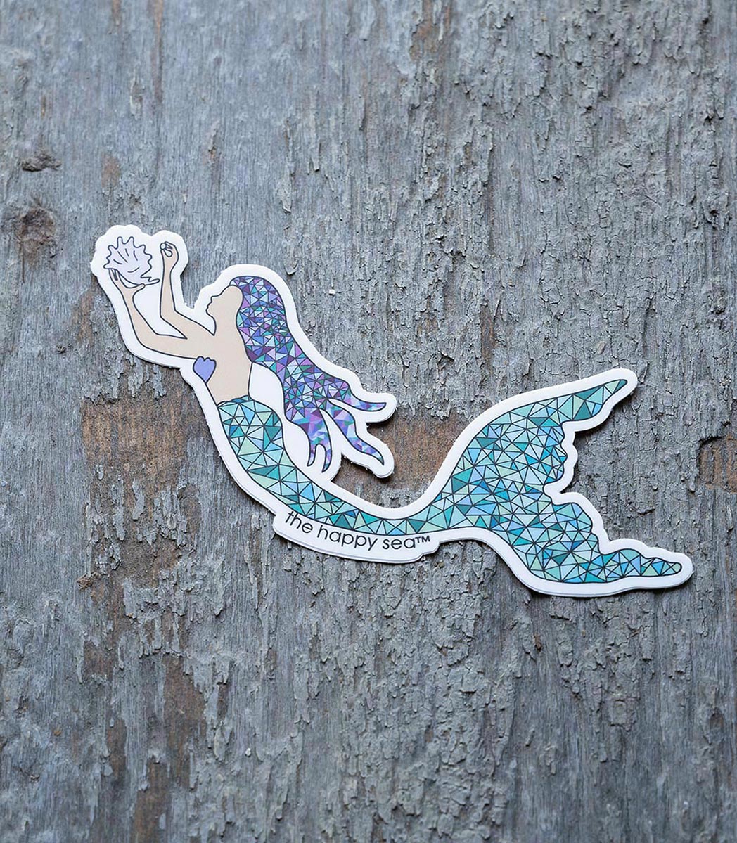 This cute 4″ Mermaid sticker will make a great addition to any window or laptop. The die-cut is made of durable weather resistant vinyl to protect from the rain, sun and wind. Always American made with a portion of their proceeds to ocean conservation, make these The Happy Sea stickers that much more special.
