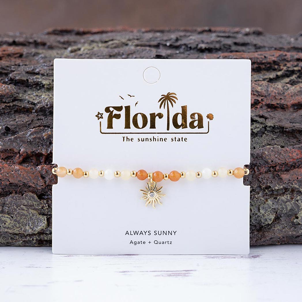 Nothing speaks Florida like sunshine as inspired with the cute, bright and colorful Always Sunny in Florida Charm Bracelet. Adorned with a sun charm, the Florida inspired bracelet is a cheerful reminder of all that you love about the Sunshine State.