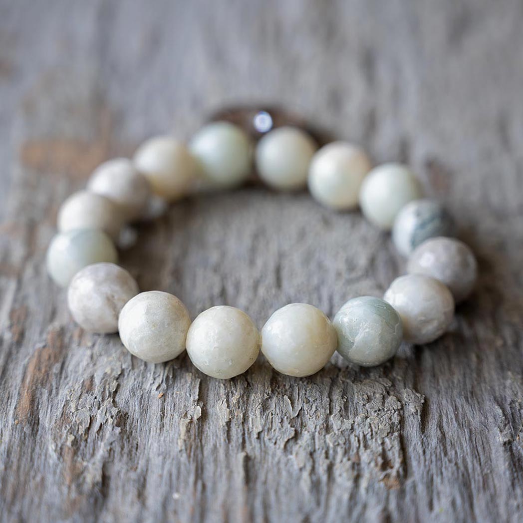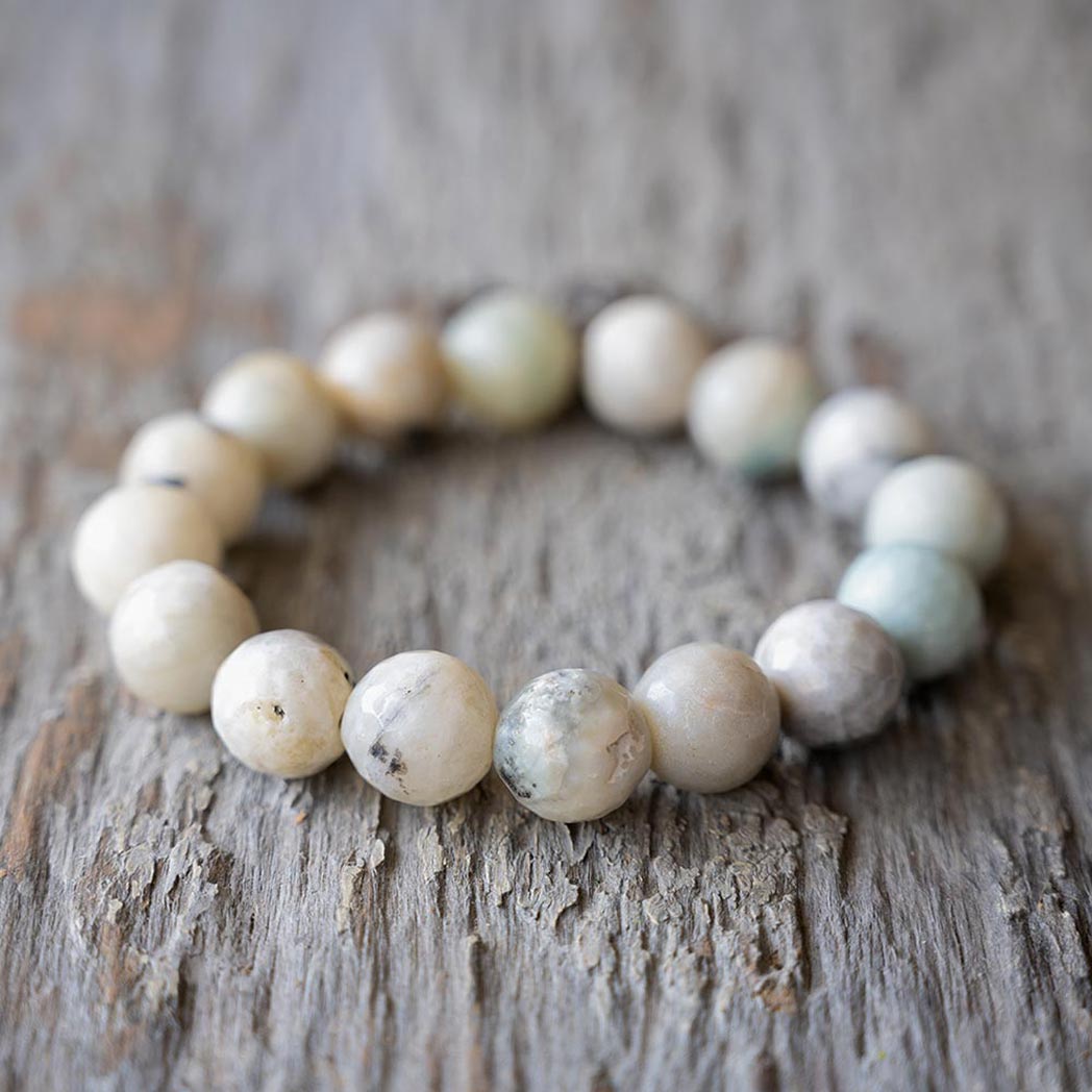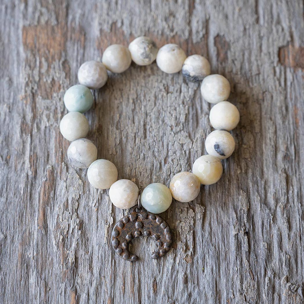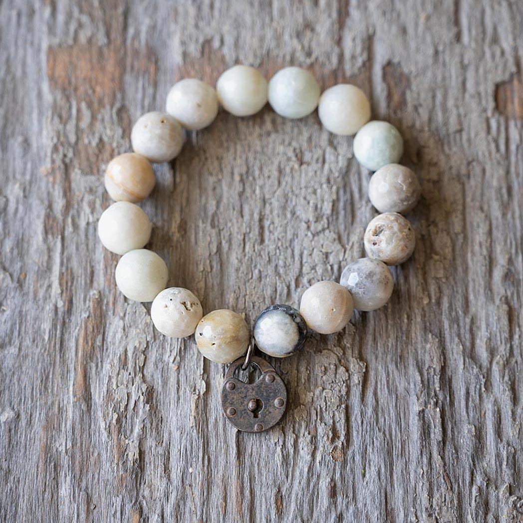 The VB&CO Designs Amazonite beaded bracelet with charm is simple but beautiful. The gold colored hand casted charm is made from actual vintage medallions and is a perfect match for amazonite beaded bracelet made of 10mm semi-precious beads.
