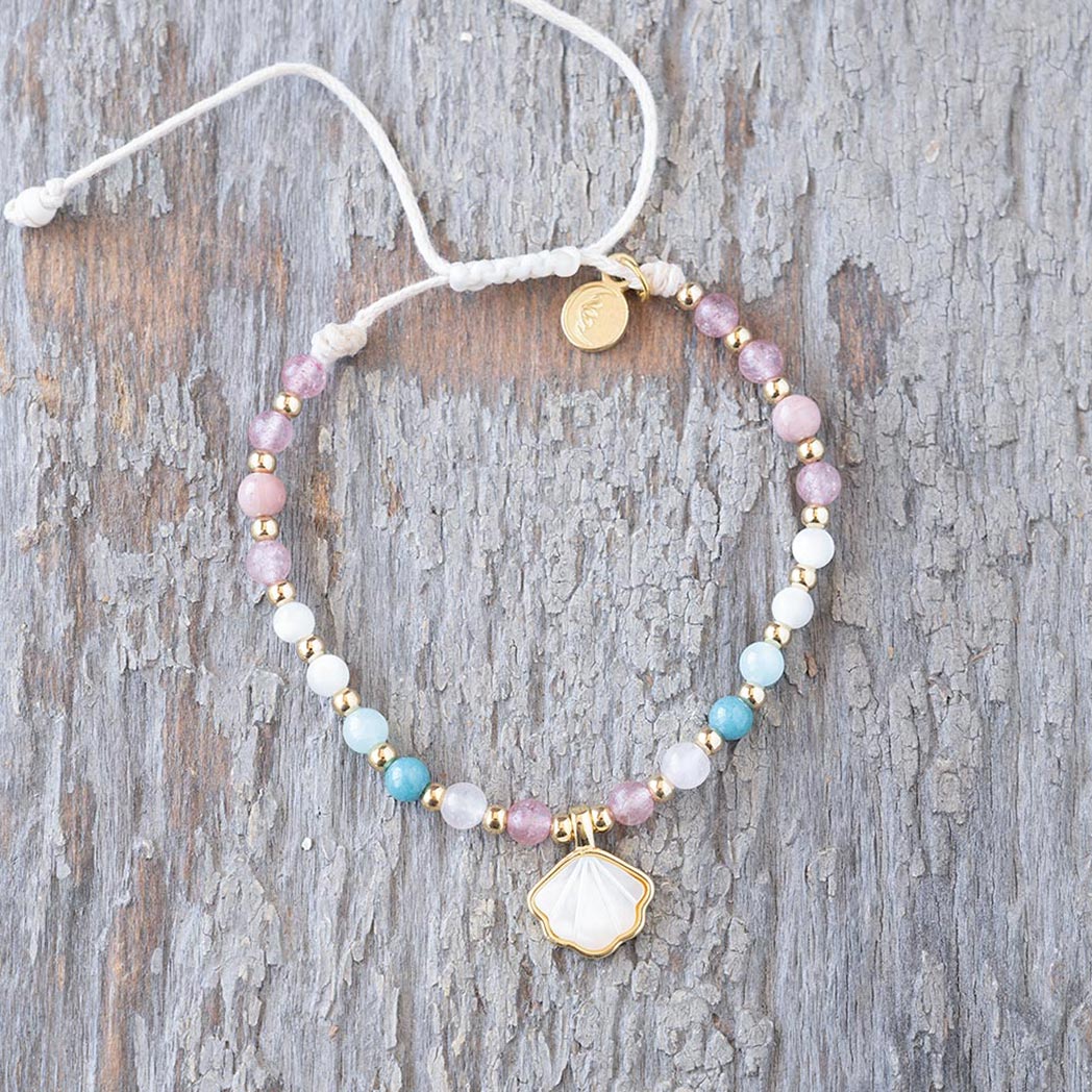 Amazonite evokes inner peace. Mother of pearl; born from the ocean, stimulates imagination and intuition. Bringing these two powerful stones together provide the calming, positive energy of a Florida beach day.