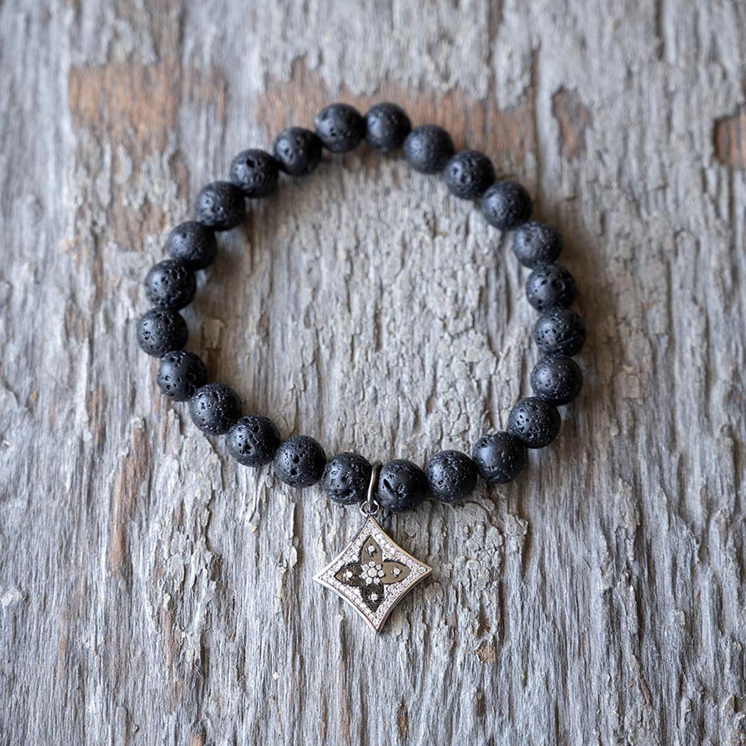 The designer inspired VB&CO Designs lava beads bracelet with charm is a simplistic beauty and a beautiful piece to add to your lava jewelry collection. Wear this beautiful genuine lava beaded bracelet alone, add to your existing stack or add a drop of your favorite essential oil and enjoy.