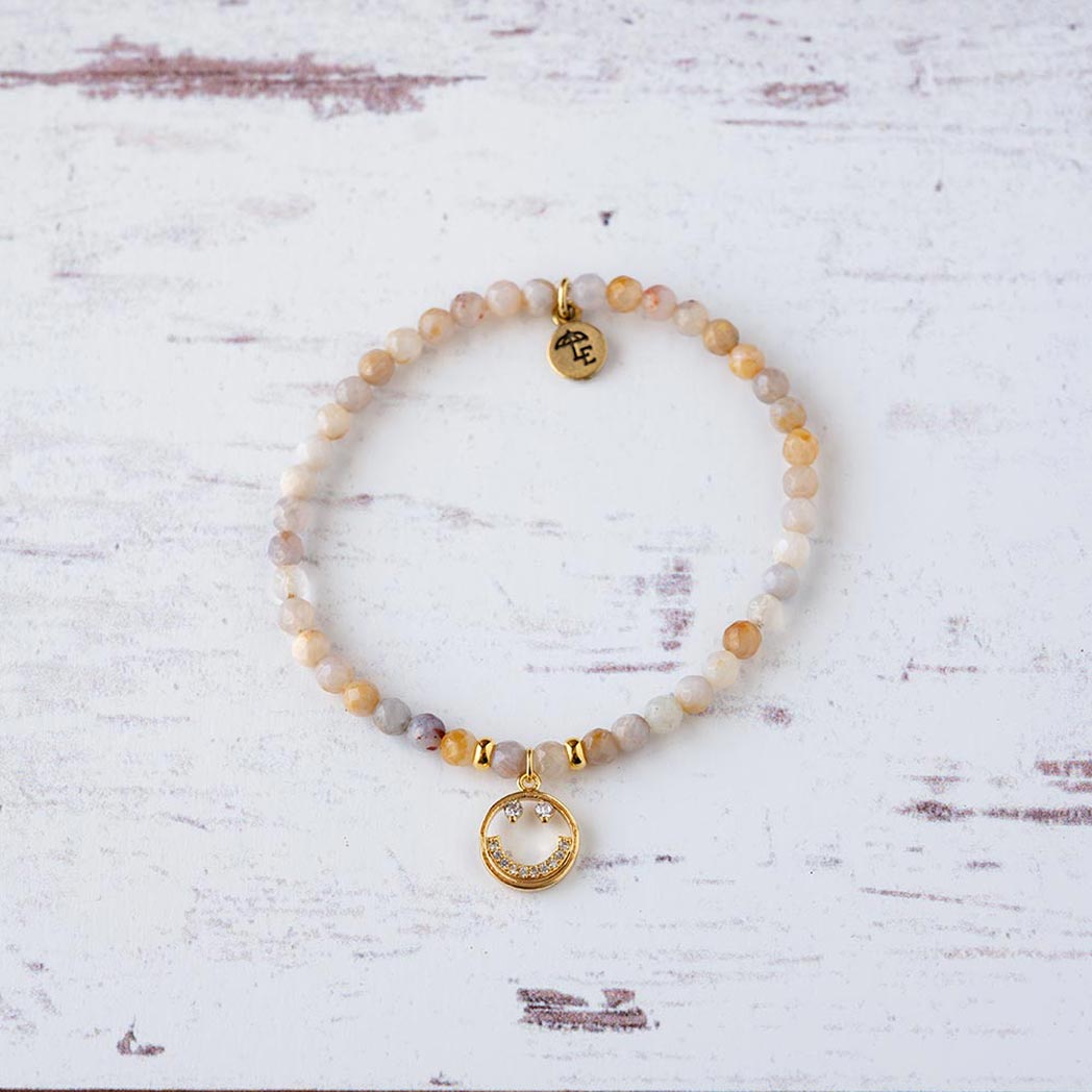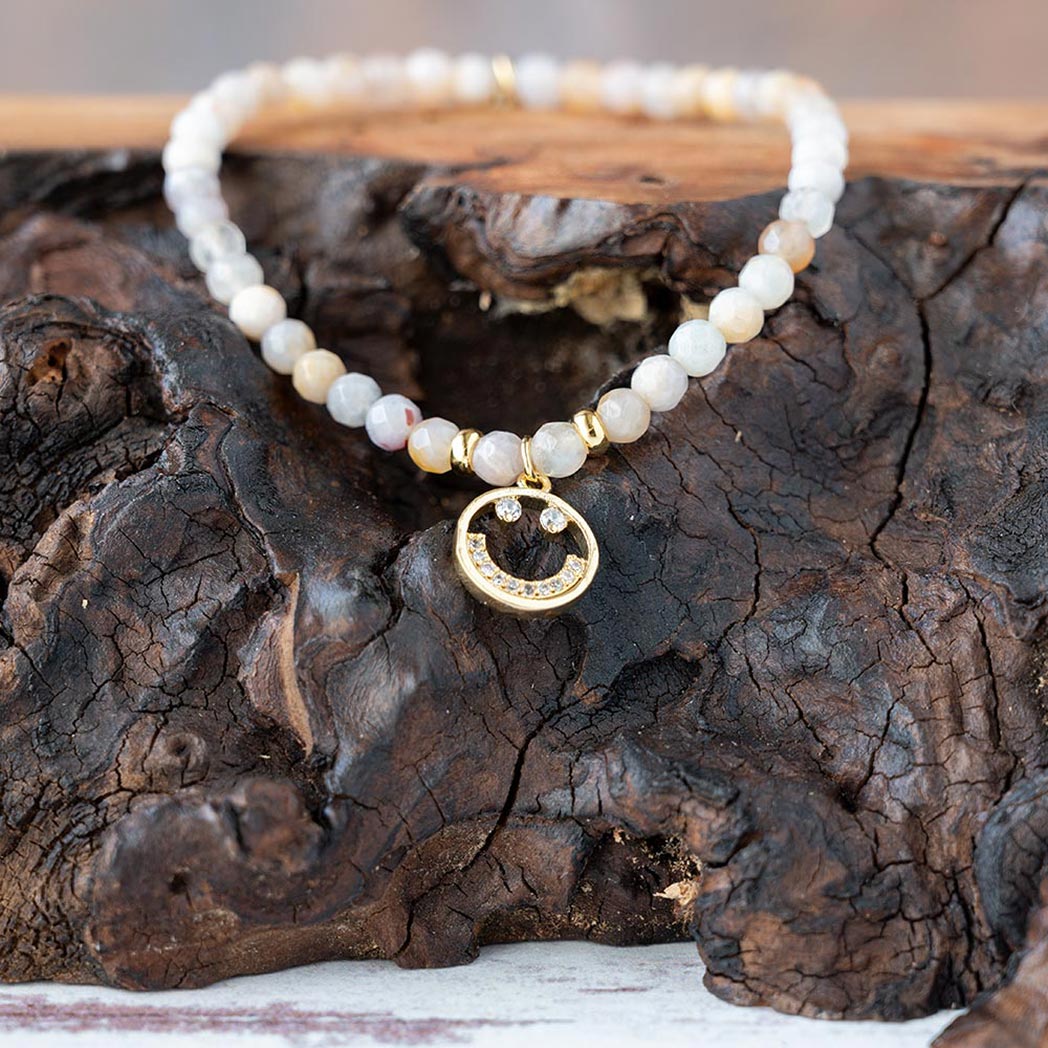 Mexican Agate Gemstone Wanderlust Smiley Bracelet