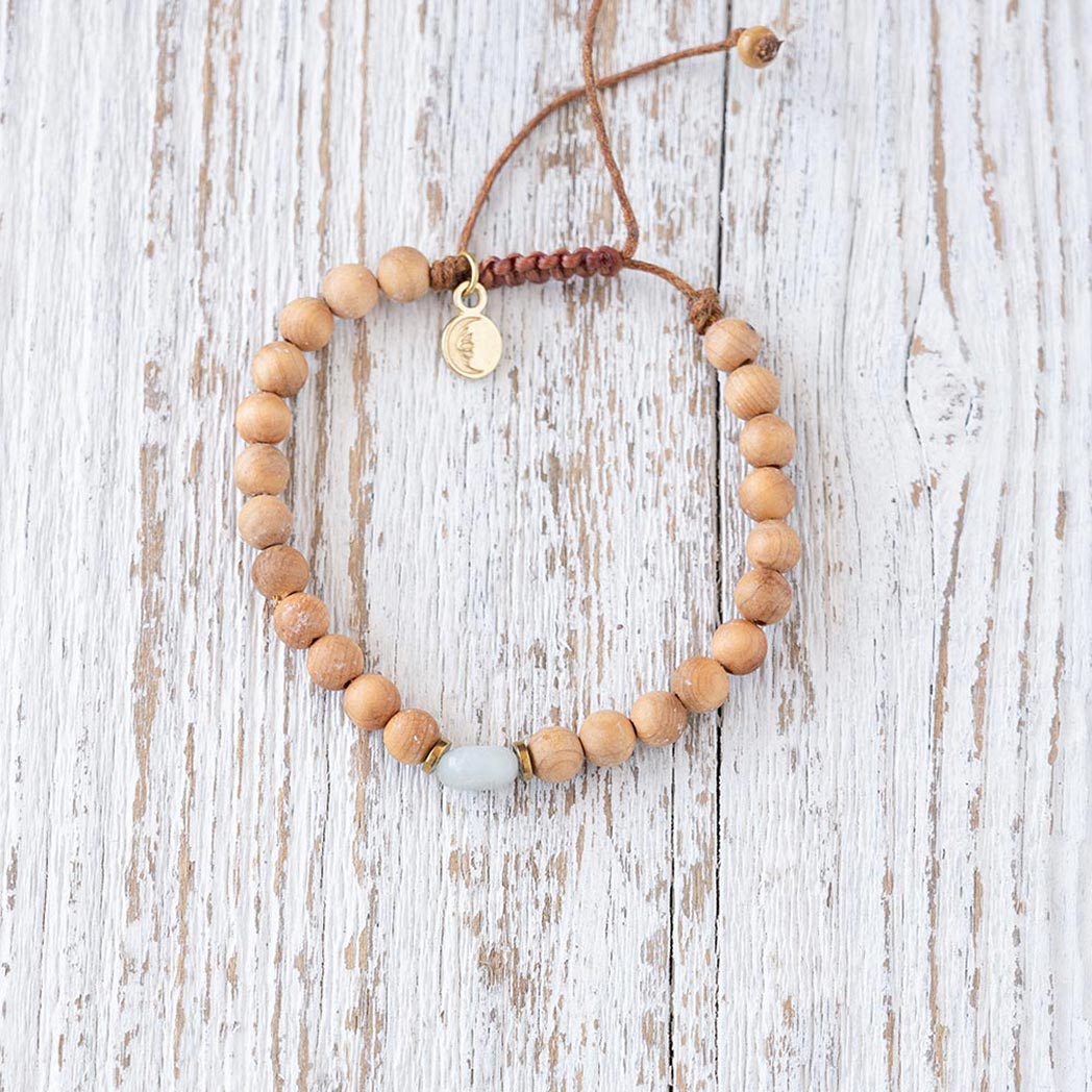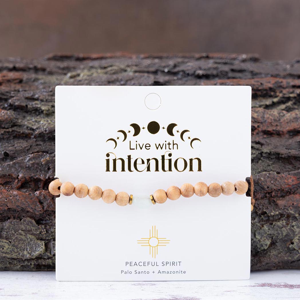 Handmade of authentic Palo Santo wood beads with an amazonite healing stone, the Peaceful Spirit Palo Santo Bracelet is a subtle, but colorful reminder to be present and mindful of thoughts, actions and choices. Wear this beautiful beaded bracelet to live with intention and in the direction of a greater purpose.