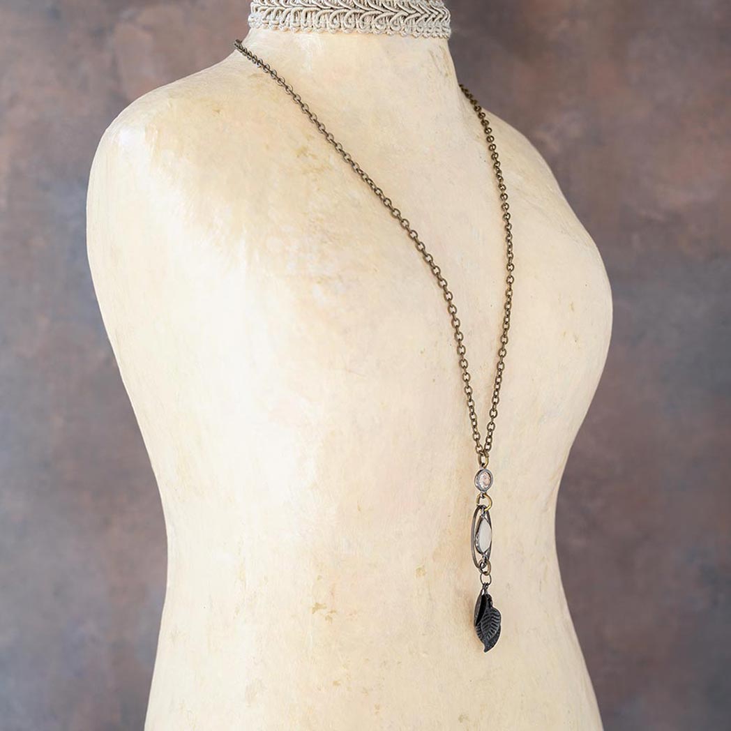 A beautiful vintage piece, the Rustic Moonstone Celestial Vintage Leaf Necklace by VB&CO designs is a touch of sophistication and southern charm. In a classic size 16″, the necklace is handmade using genuine moonstone and a non-tarnishing bronze chain.