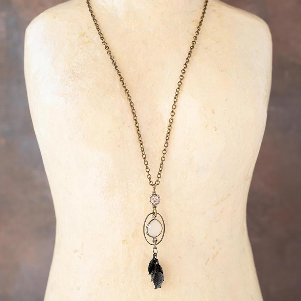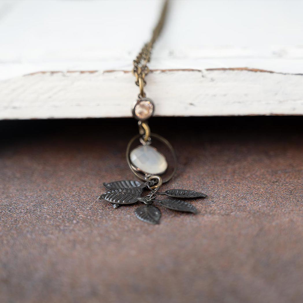 Rustic Moonstone Celestial Vintage Leaf Necklace