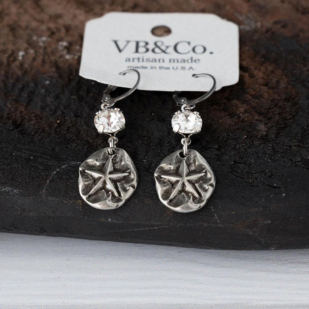 Add a little simple chic to your coastal jewelry collection with the Starfish Earrings with Swarovski Crystals and hand casted starfish by VB&CO Designs. The cute starfish earrings are adorned with a swarovski crystal and include  a 1″ stainless steel earring wire and make a perfect pair for days at the beach or brunch.