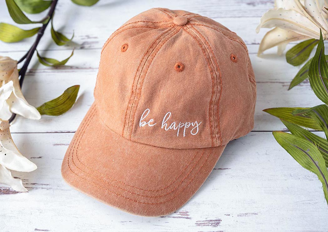 Feel relaxed and sporty with the women’s Be Happy hat. Made of 100% cotton pigment dyed twill, this pre curved visor cap is not only comfortable but stylish. Enjoy this soft cap while out having fun and being happy with family & friends.